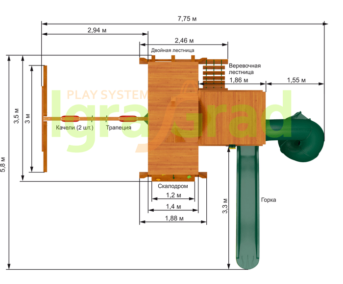 Габариты игрового комплекса для детей составляют: